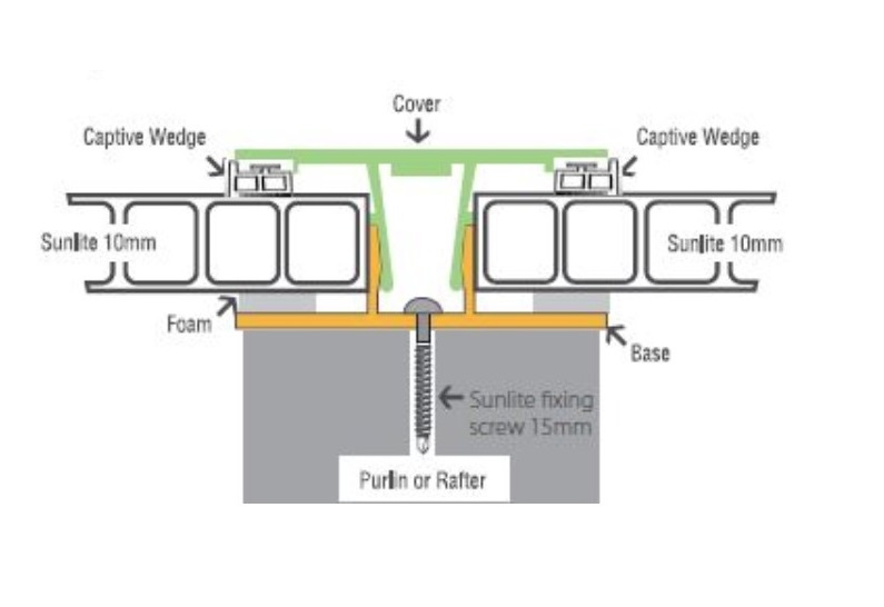 Two part joiner base for the installation of 10mm twin wall polycarbonate roof sheeting.