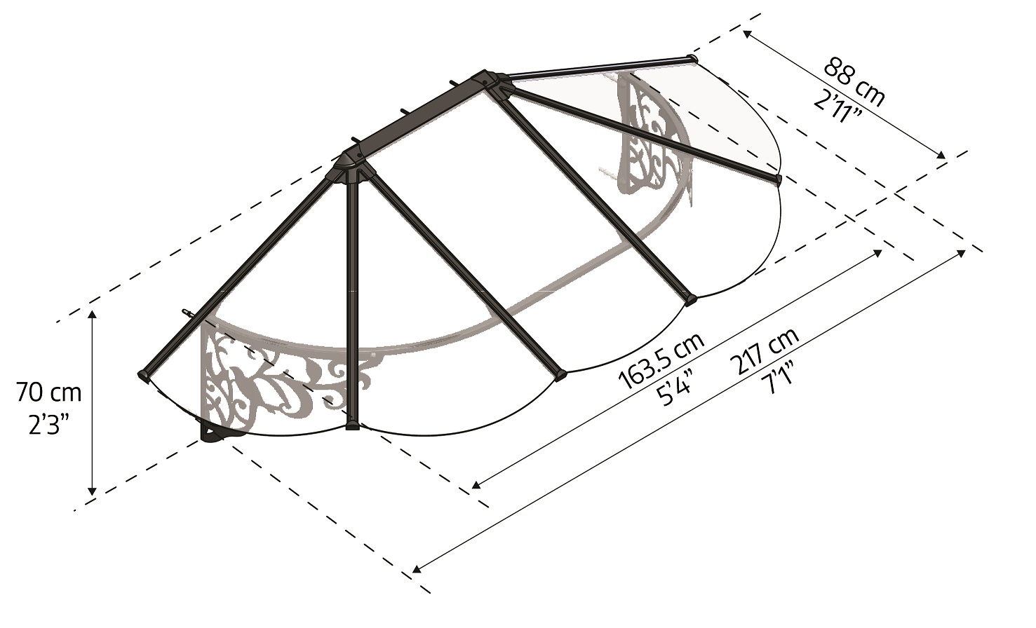 The Lily Frame is built from rust-resistant aluminium with laser-cut precision, finished in a durable grey (RAL 7016) powder coat for a sleek look and long-lasting protection. Itโs reinforced with galvanised steel support arms and comes with pre-drilled profiles, ready for quick and easy assembly.