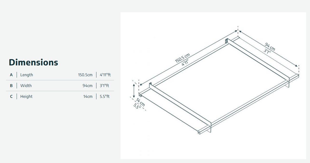 Ready to assemble pre-cut panel Durable, powder coated galvanized steel support brackets in dark grey finish, pre-drilled profiles.